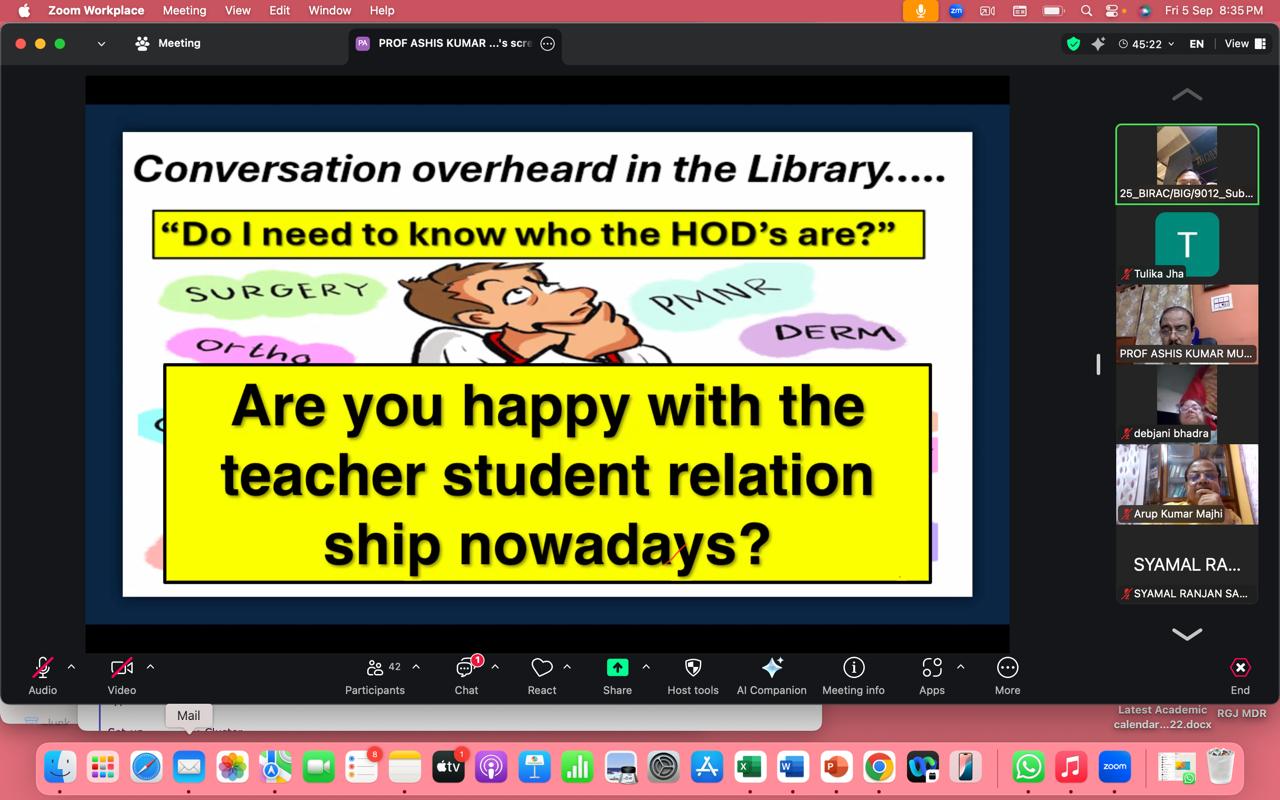There was a panel discussion on teaching methods and doctor patient relationship titled "Beyond Textbooks and Stethoscopes,Redefining Doctor Patient relationship". This was moderated expertly by Dr Ashish Kumar Mukherjee and Dr Chaitali Datta Ray.