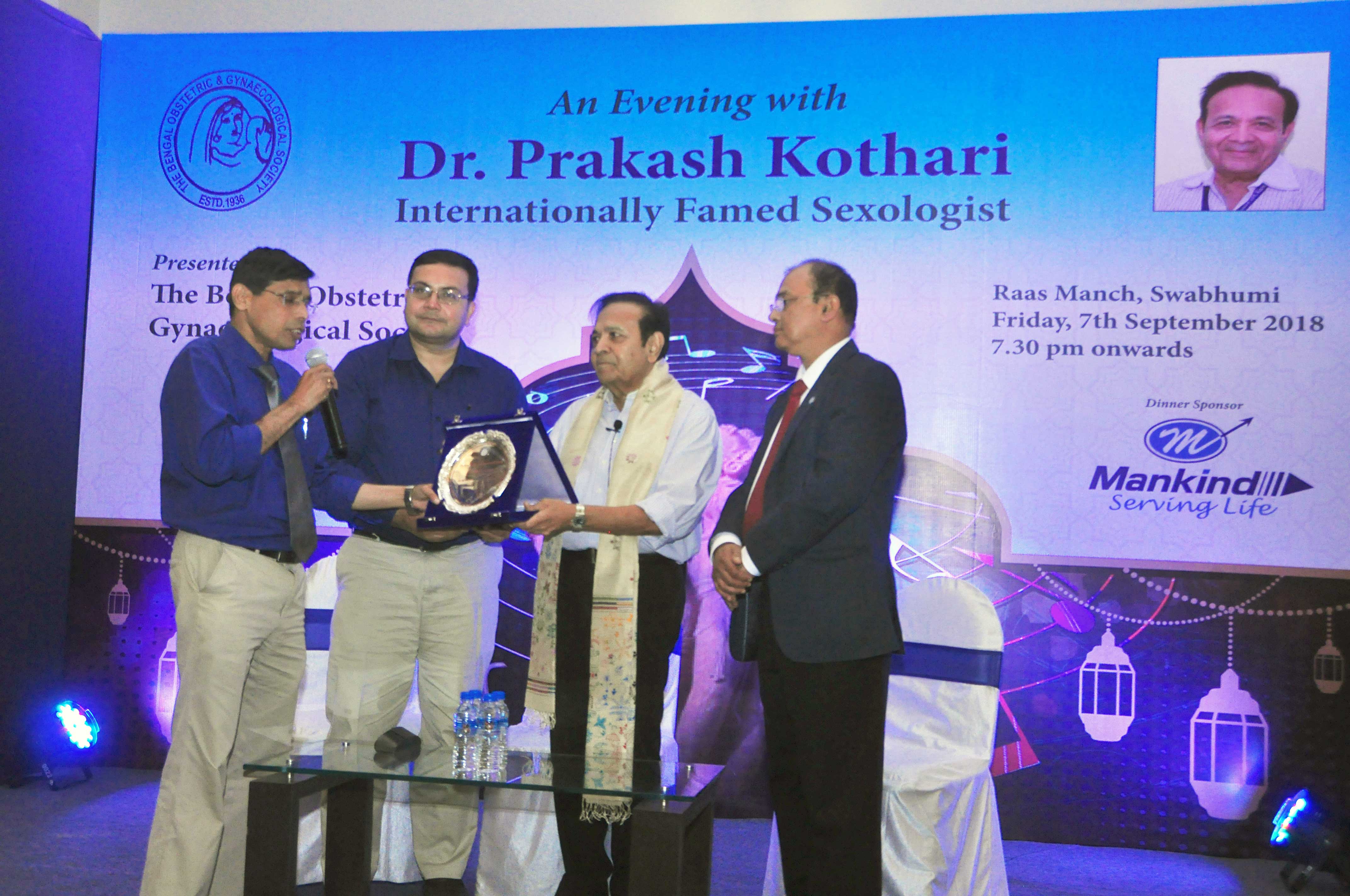 BOGS was organized a stand-alone program on Friday, 7th September 2018 with Dr. Prakash Kothari, the internationally famed sexologist of Mumbai. The program titled ‘An Evening with Dr. Prakash Kothari’ was held at Raas Manch, Swabhumi from 7.30pm onwards. He spoke on Sex & Ghazal. A total of 120 doctors from in and around Kolkata attended the academic meet.
