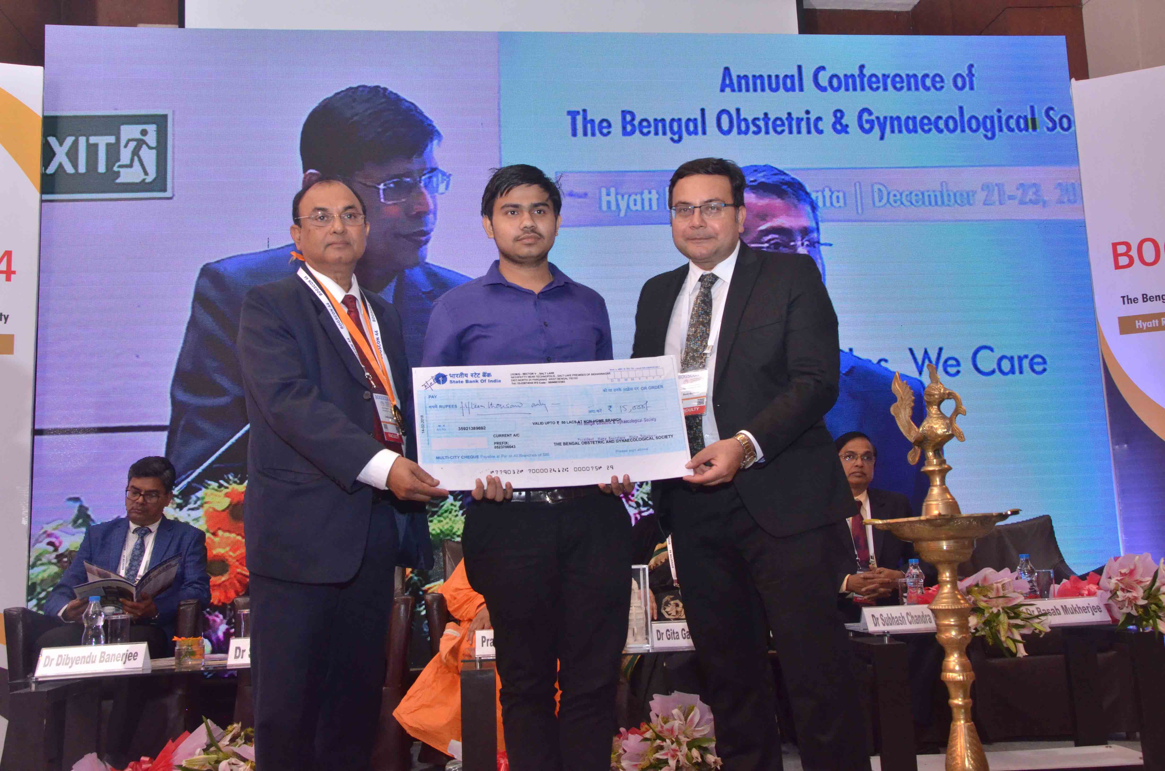 The name of four recipients of the BOGS Scholarship for needy and meritorious students were announced and their first chequewas handed over to MsPurnimaGaraifrom Murshidabad Medical College & Hospital, MrSayakTahfrom Medical College & Hospital, Kolkata, MrSoujanyaChakrabortyfrom BankuraSammilani Medical College and MrNuruddinMondal, from Medical College & Hospital, Kolkata. This session was conducted by DrBiswajyotiGuha, Hony Clinical Secretary &DrAmit Basu, HonyJt Clinical Secretary, BOGS and the cheque was presented to the candidates by Prof SudhirAdhikari, President, BOGS and DrBasab Mukherjee, Hony Secretary, BOGS.