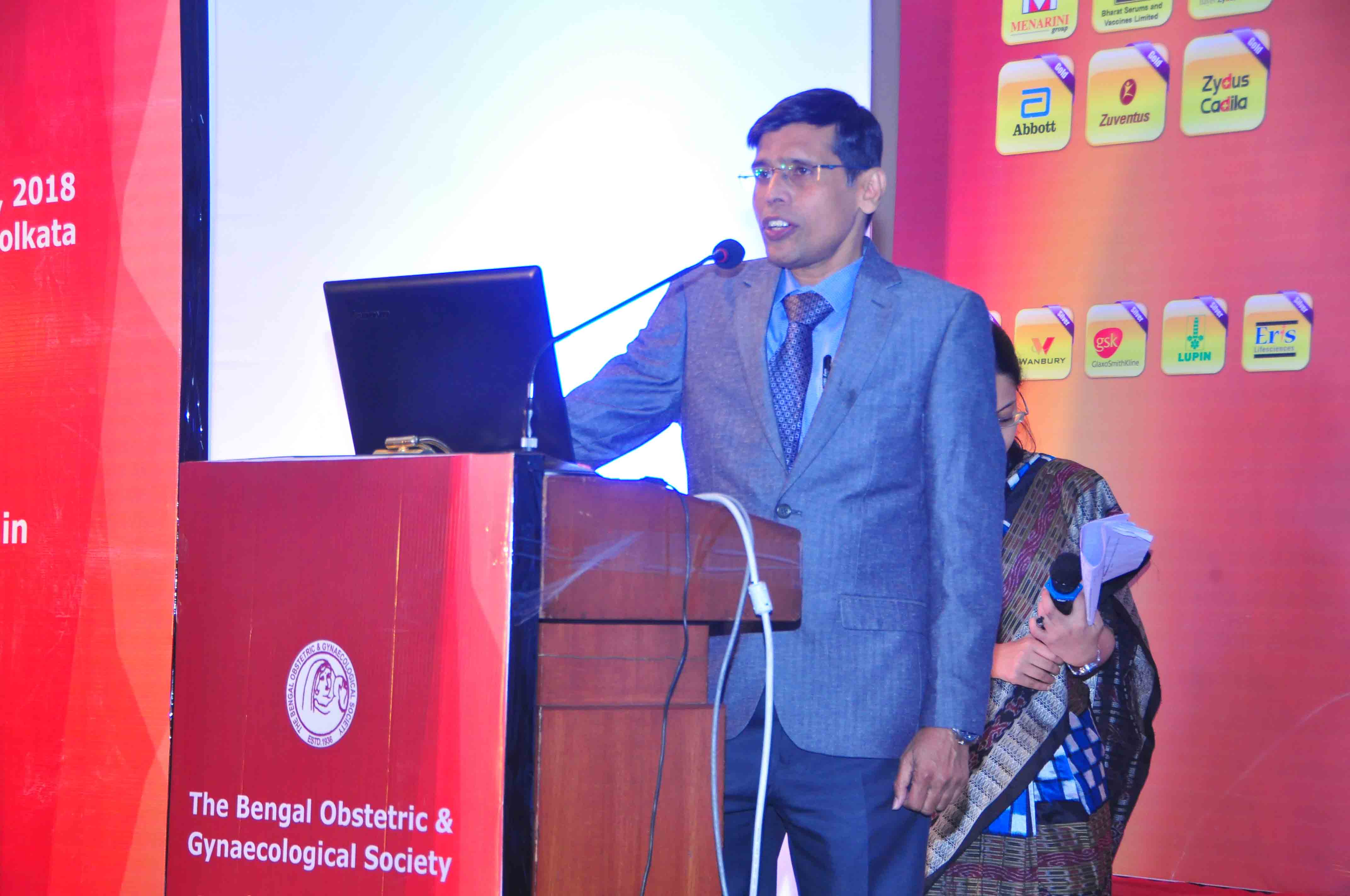 The Program started with the Free Paper and Debate Sessions for the post graduate BOGS members. For the first time, the Industry Session had five lectures, one for each of the platinum sponsors delivered by eminent senior faculty of the society. At the inauguration ceremony, the immediate past president Prof Subhash Chandra Biswas was handed over the C S Dawn Appreciation Award. Senior members and past presidents enthusiastically joined for the lamp lighting session. The society took pride in felicitating senior members Dr. Jitesh Samaddar, Dr. Anjali Samadder and Dr. Bimal Kanti Goswami who were present at the session and Dr. Paresh Sen and Dr. Sisir Kanti Chattopadhyay in absentia.